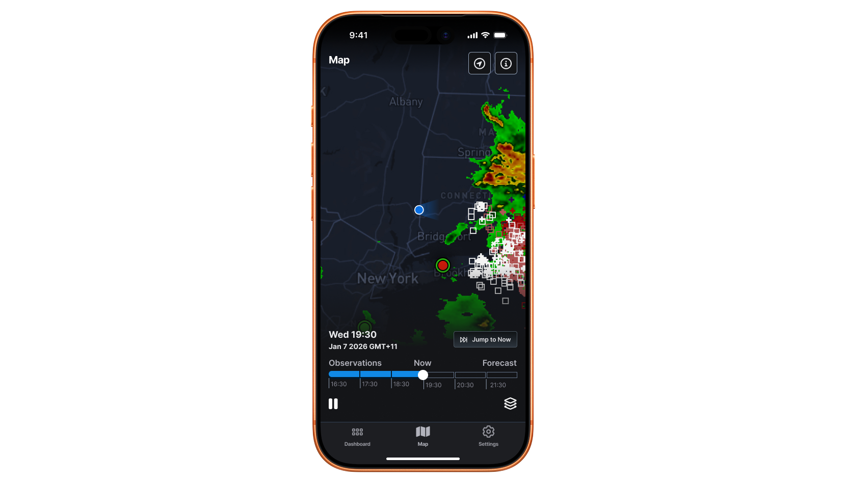 The Weather Hub mobile app extends this experience to users in the field, offering the same core map functionality without compromise. This ensures users can access critical weather insights wherever they are, supporting time-sensitive decision-making on the go.