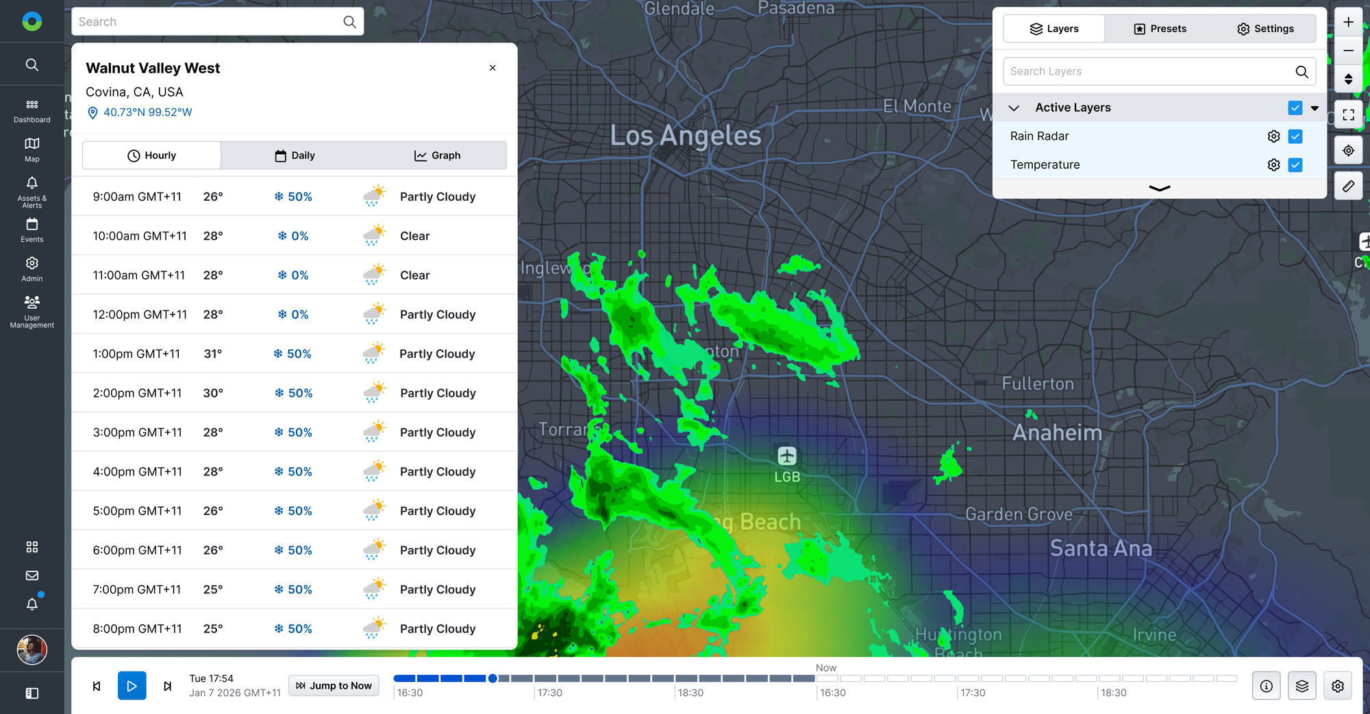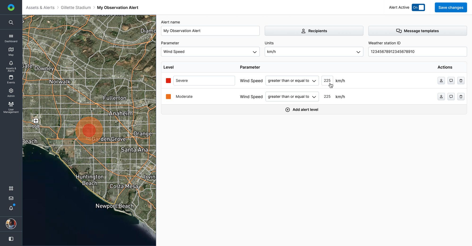 Alerts management in Weather Hub is all about efficiency. Users can quickly create alerts that trigger based on certain thresholds and alert team members - via email, SMS, or push notification.