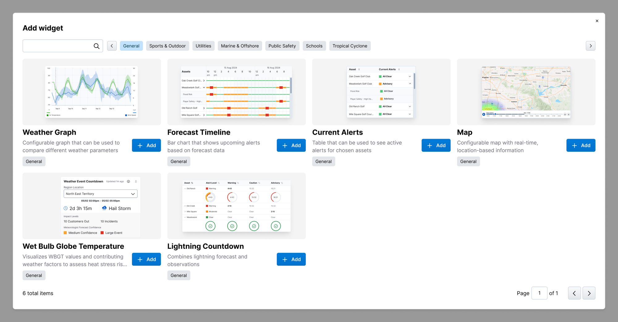 The new Weather Hub Dashboard allows users to build fully custom dashboards to meet their needs, with modular widgets that can be configured individually.