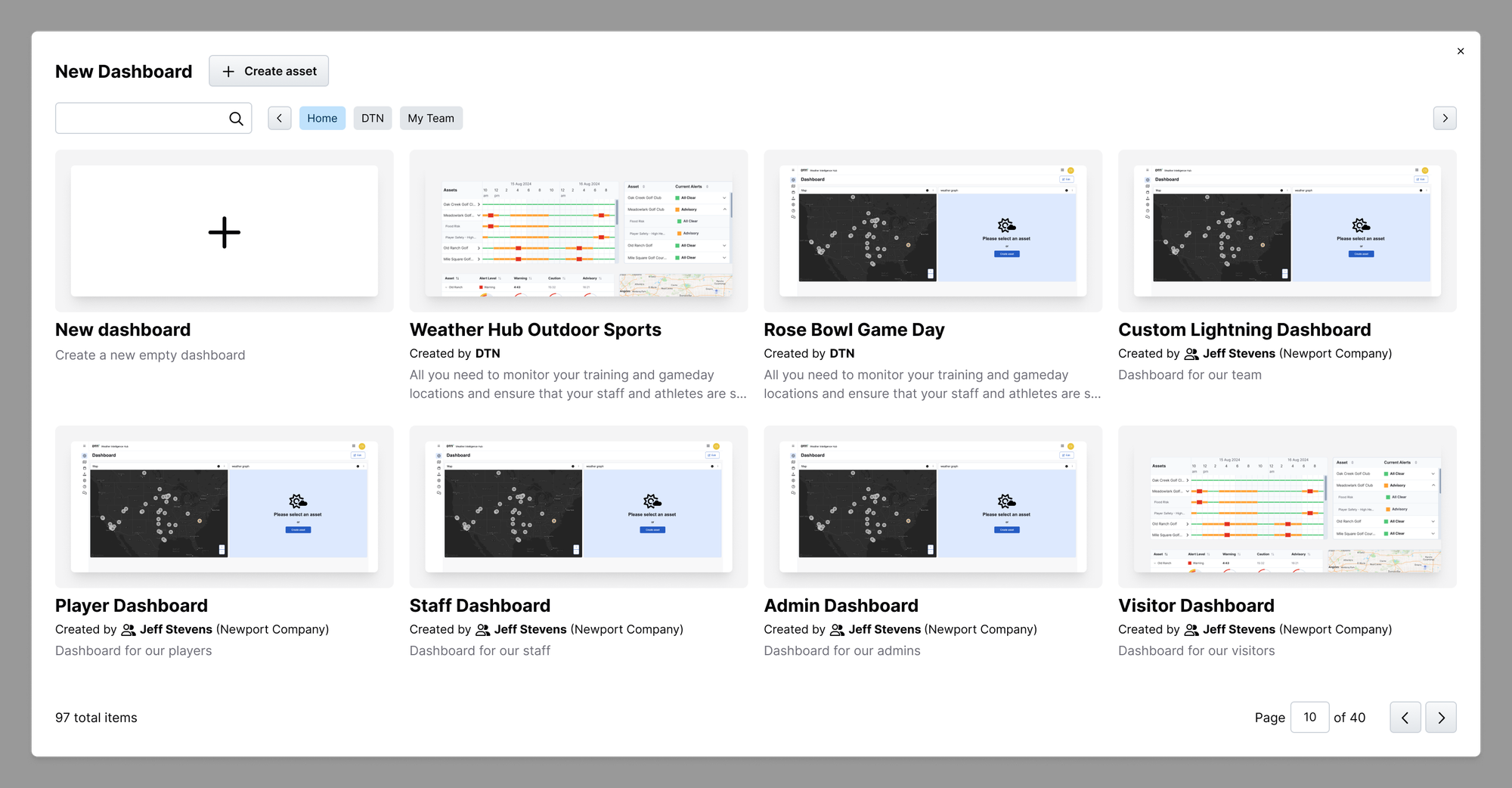 To help new users get started quickly, Weather Hub also includes a dashboard template system with pre-configured templates created by DTN and with the ability for users to create their own templates.
