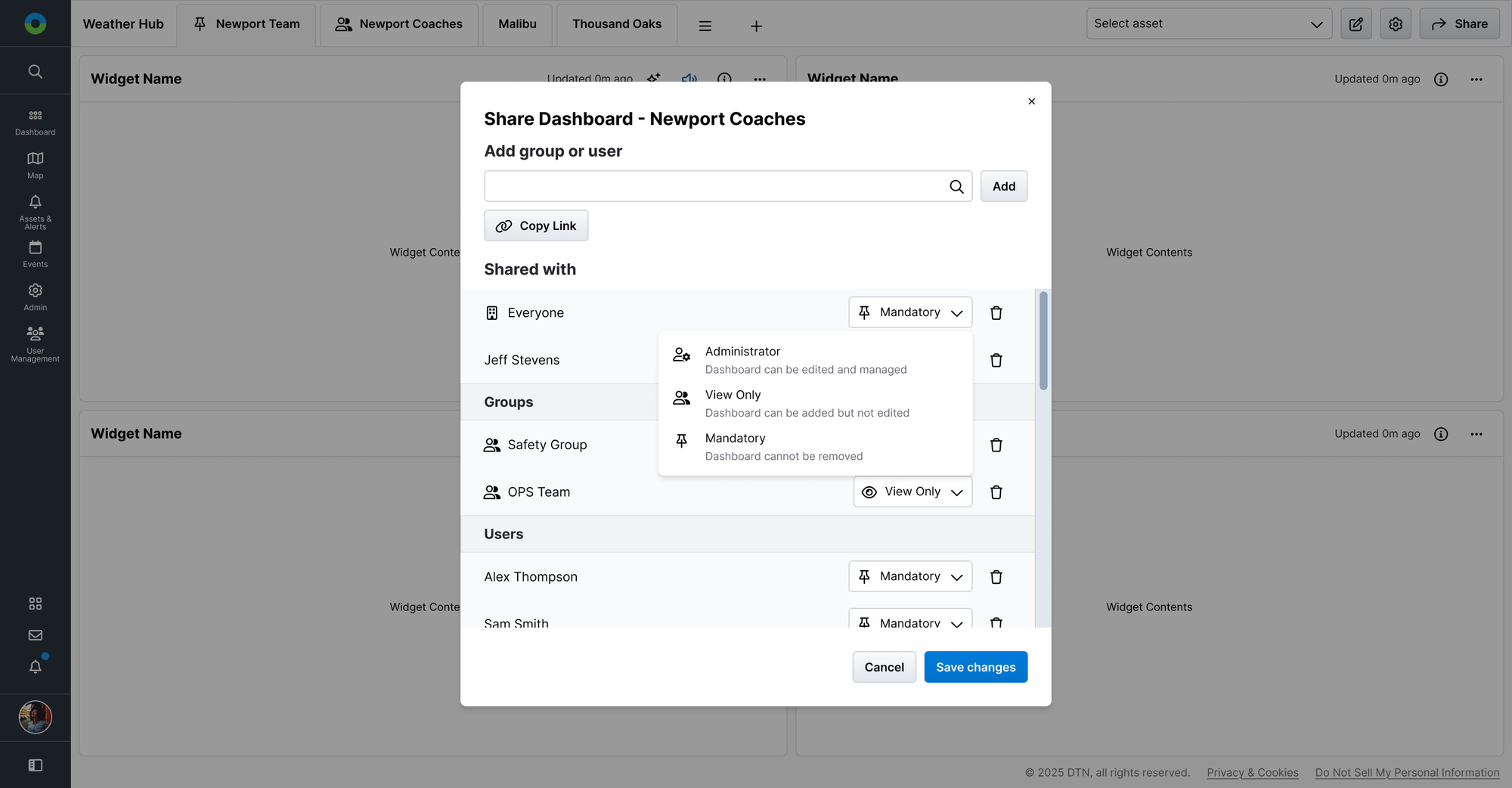 A Dashboard sharing feature means an administrator can create and maintain a living Dashboard with colleagues. A Google Docs-style permissions system means these Dashboards can be customised in collaboration with colleagues, which can be essential when coordinating through a fast-moving weather event.